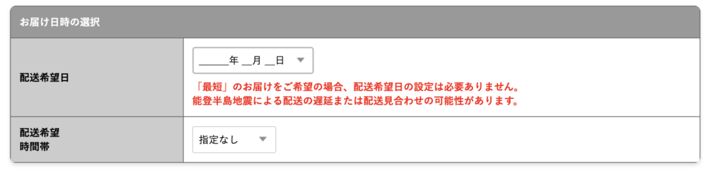最短で届けてほしい、でも明日以降のお届けがいい場合は、