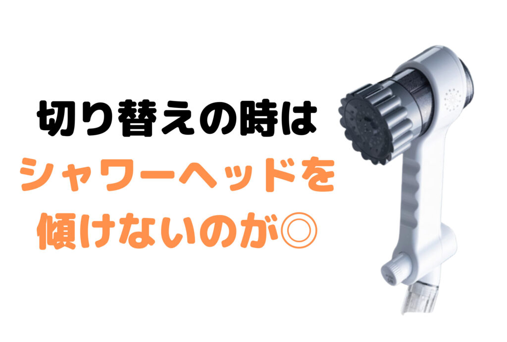 シャワーヘッドを傾けながら切り替えをすることはあまりないと思いますが、頭を洗うときなどは少し注意してくださいね。