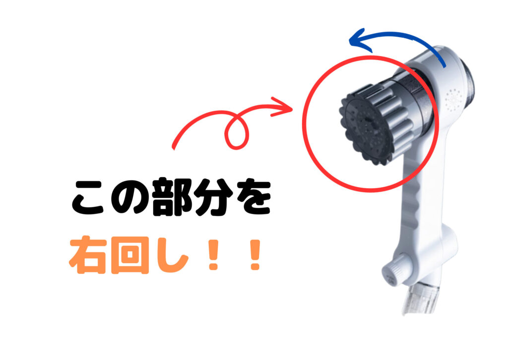 ミラブルゼロの水流切り替えは灰色のシャワーヘッド部分を右にカチっと回すだけで切り替えられます。