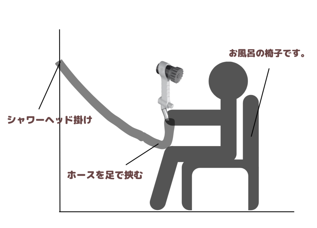 シャワーホースの重さを一旦膝で支えることで、劇的にシャワーが軽くなります!
