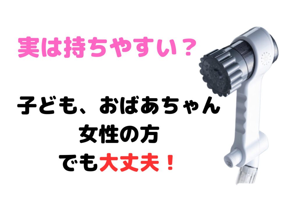 手が小さい方はシャワーヘッドのデコボコ部分と止水ボタンのデコボコに指をしっかり掛けて使うと、長時間でもめちゃ楽に使えます!