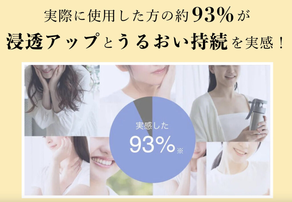 すると、93%の人が、実際に使って『潤い持続』や『浸透UP』を実感したそうなんです!